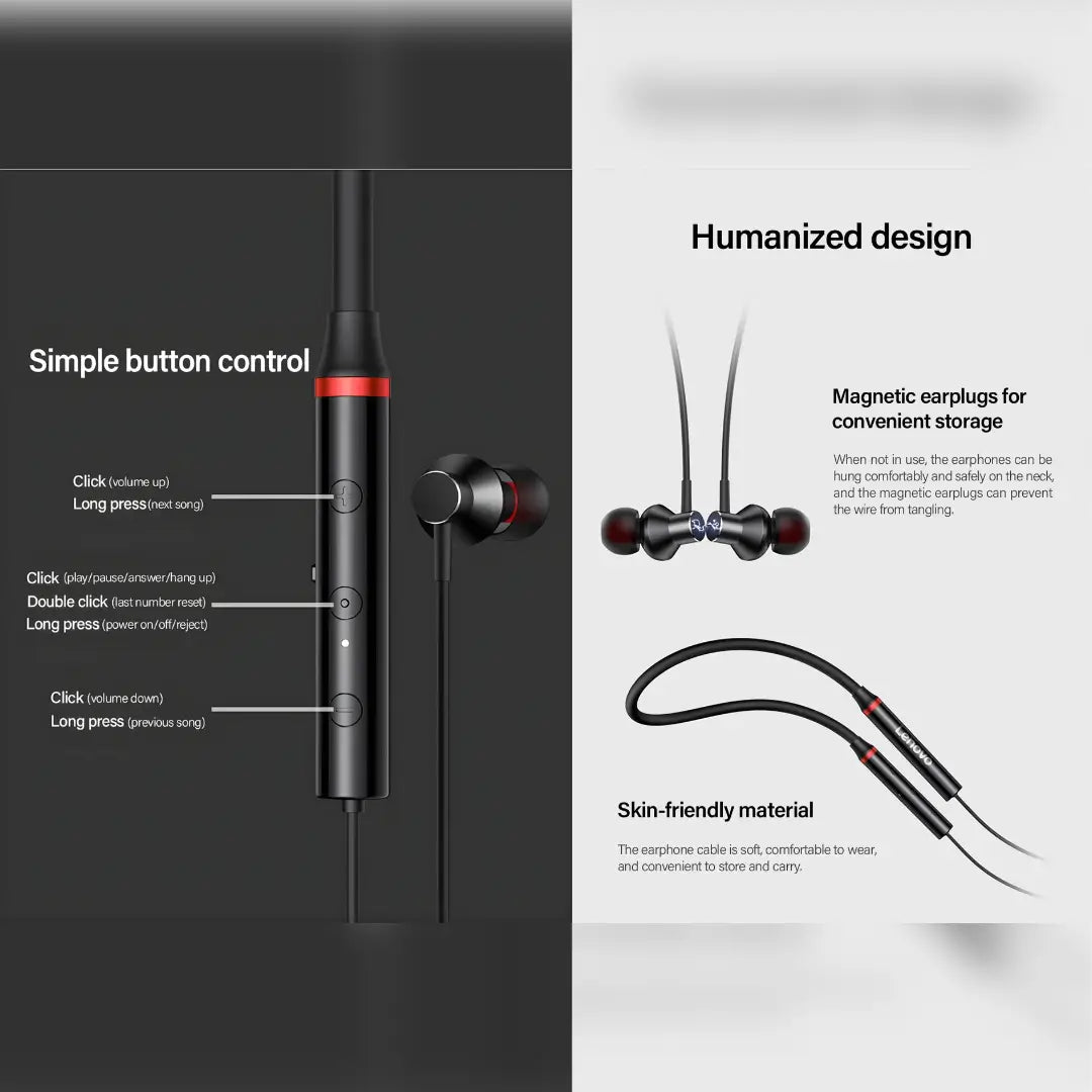 Lenovo HE05X Bluetooth Neckband Earphones – Wireless, Long Battery, High Bass