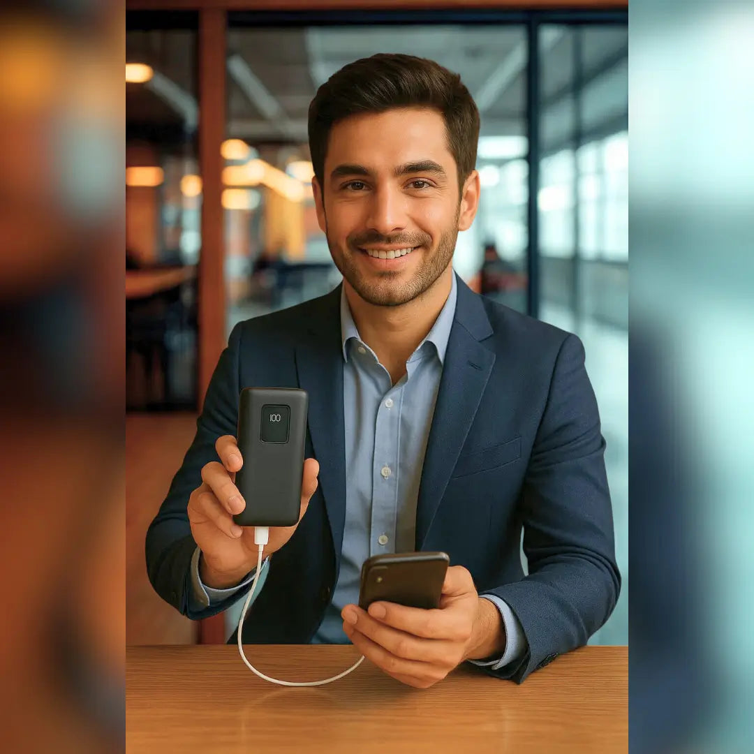 🔋 20000mAh High Capacity – Long-lasting battery backup