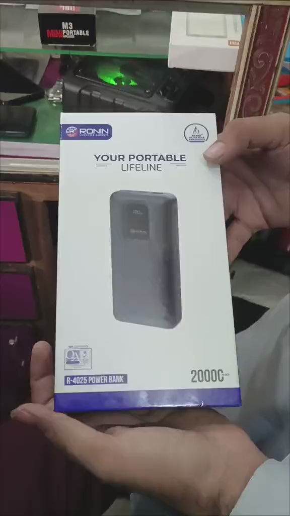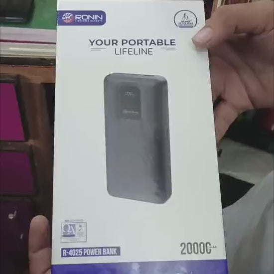 Ronin R-4025 ek 20000mAh high-capacity power bank hai jo 22.5W PD fast charging support karta hai. Dual USB outputs, USB-C & Lightning inputs, aur LED battery display ke sath, ye power bank travel aur daily use ke liye best choice hai.