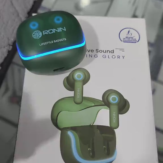 Ronin R7015 Gaming Earbuds powerful sound, ultra-low latency gaming aur crystal-clear calls ke liye design kiye gaye hain. ENC mic, Bluetooth 5.3, stylish design aur IPX5 water resistance ki wajah se ye earbuds gaming, music aur daily use ke liye perfect choice hain.